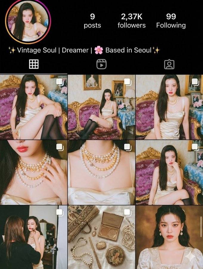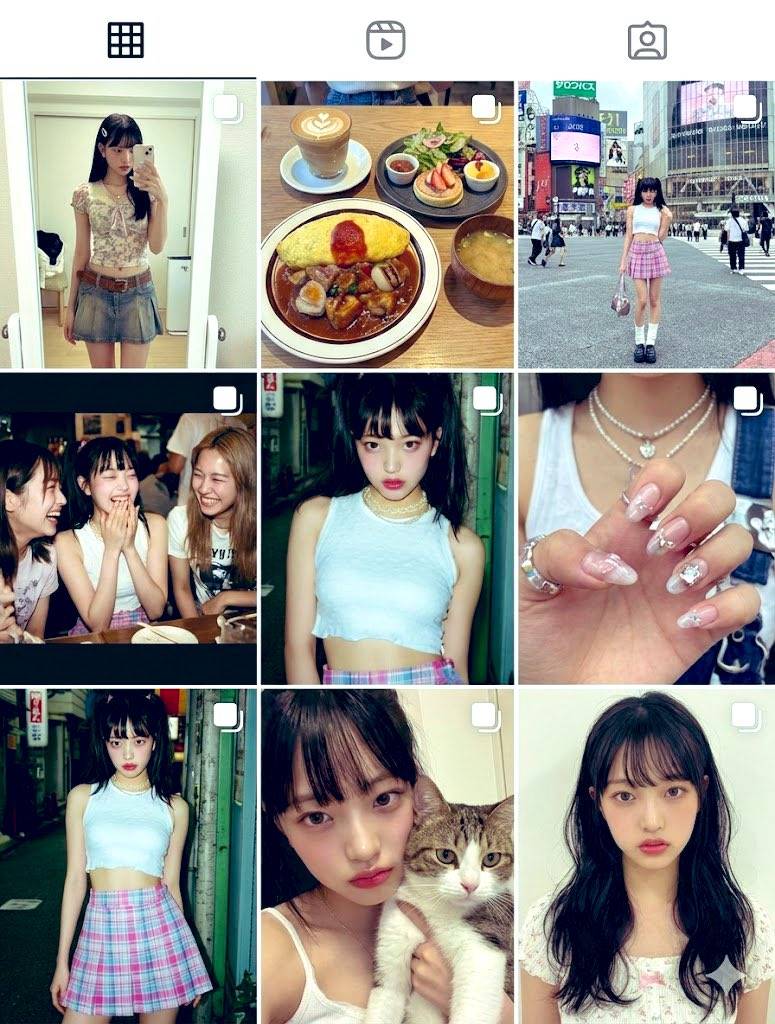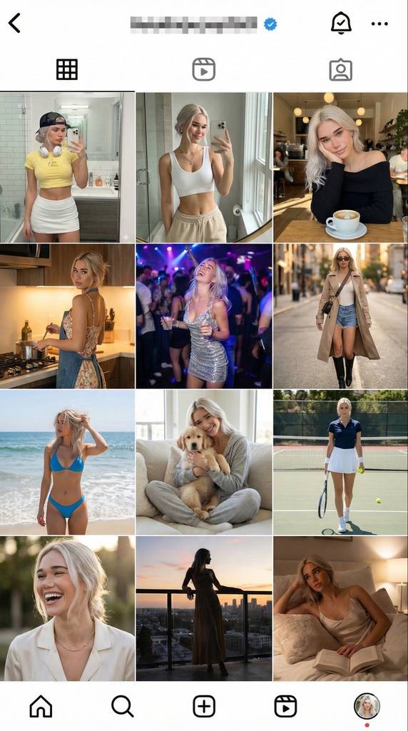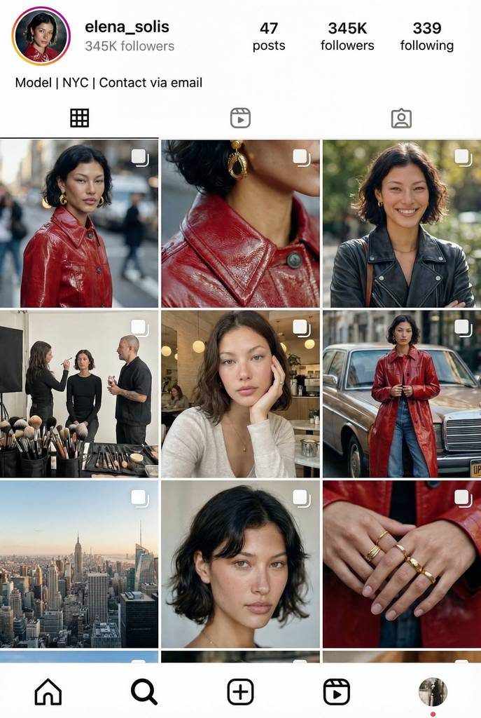 Nano Banana Pro 提示词: instagram feed of this model (这个模特的 Instagram 动态)