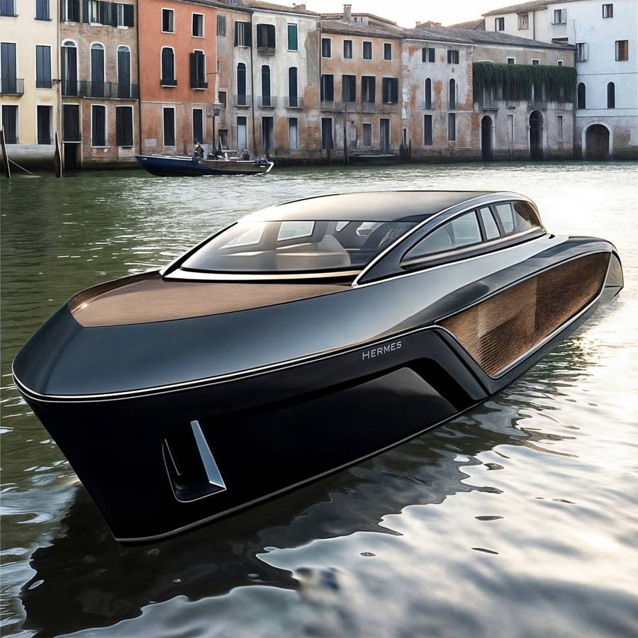 视觉上的张力扑面而来。经典的贡多拉静静滑过数百年历史的老建筑立面,而“赫尔墨斯”号游艇概念则以锋利的几何线条和毫不妥协的现代感,划破了这幅宁静的画面。由保罗·德梅尔设计的这艘49英尺概念艇,并不试图融入环境。它的目的就是脱颖而出,将“对比”本身作为一种设计工具,而非需要柔化或隐藏的缺陷。