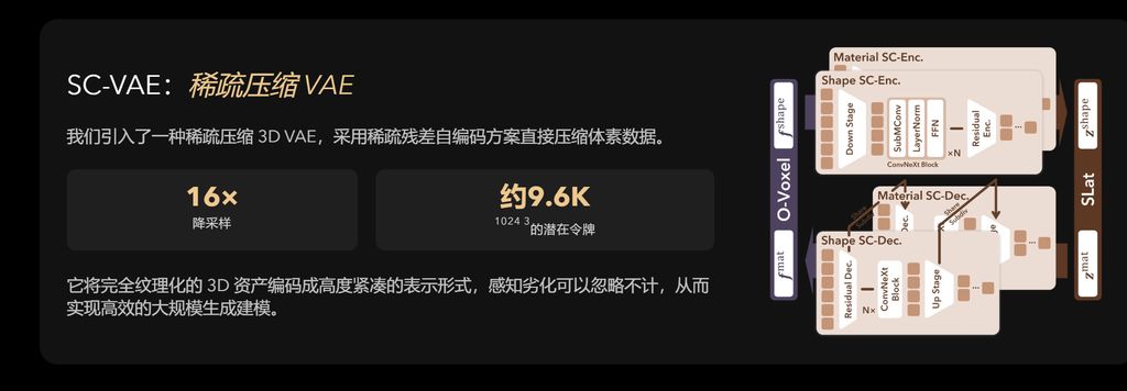 核心简介:这是一个拥有40亿参数的开源图像转3D模型。其核心是一种原生且紧凑的结构化潜在变量技术,基于原生3D VAE,实现了16倍的空间压缩,从而能够高效、可扩展地生成高达1536³分辨率的PBR纹理资产。