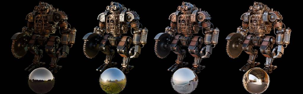这意味着生成的资产可直接用于游戏引擎或渲染器中进行逼真的打光和渲染。